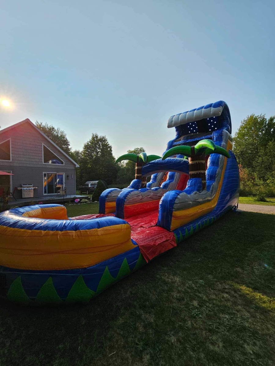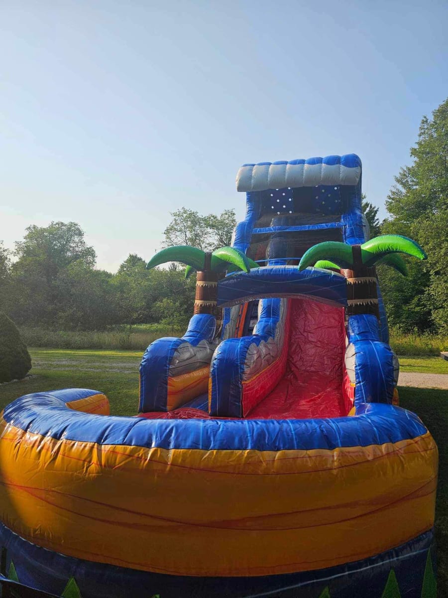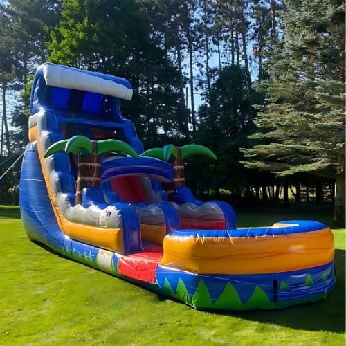 Dive into excitement with the 18 Foot Tropical Tsunami Slide – the ultimate way to add a splash of fun to your next event! Whether you're planning an unforgettable birthday party or a lively cookout, this slide promises to be the highlight of the day. Standing at an impressive 18 feet tall, it challenges thrill-seekers to a wave of adrenaline-fueled fun.